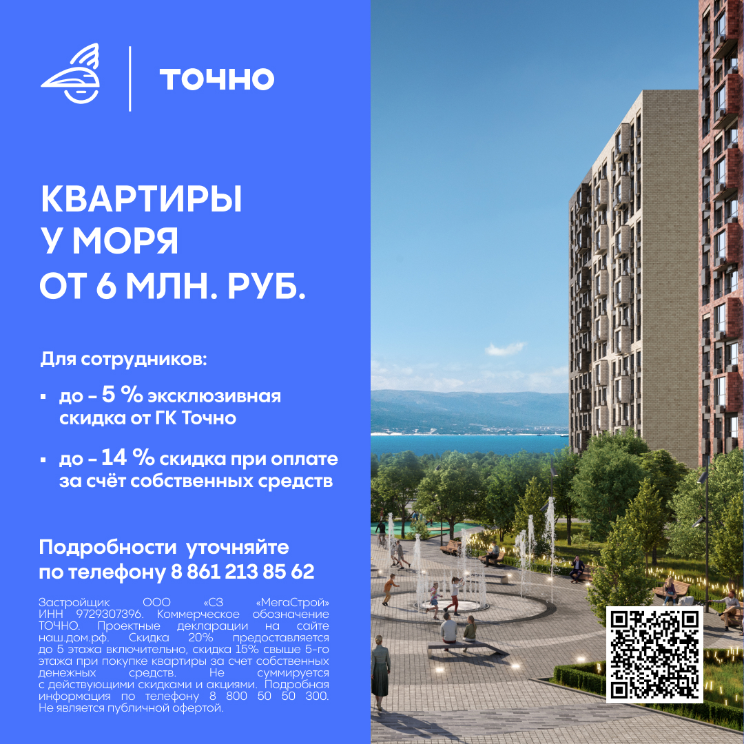 Выберите свою идеальную квартиру от ТОЧНО уже сегодня: звоните 8 861 213 85 62, чтобы узнать об эксклюзивных предложениях для сотрудников компании, или оставьте заявку на сайте https://tochno.life/. Просто наведите камеру своего смартфона на QR-код на любой картинке внизу.